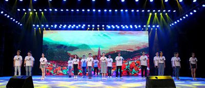 配乐诗朗诵《祖国啊我亲爱的祖国》。身为即将接受高等教育的我们要怀着为中华之崛起而读书的坚定信念,坚信少年强,则国强。
