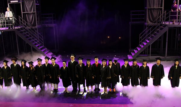 本网讯(通讯员 珞音)6月26日晚上,华中地区高校首部音乐剧《名扬四海》在武汉大学大学生活动中心隆重上演。《名扬四海》独具创意,呈现了青年艺术生的成长轨迹,诠释了执著的艺术追求,传达着人生奋斗的感悟。武汉大学艺术学系大力探索机制创新,联合湖北艺术职业学院、武汉体育舞蹈艺术学校、江汉大学等兄弟院校,整合武汉鸿图影业有限公司等创意产业劲旅,精心打造华中地区高校首部大型音乐剧《名扬四海》,也是我系2012级表演专业学生的毕业作品,绘就武汉剧坛新颖靓丽的风景线。