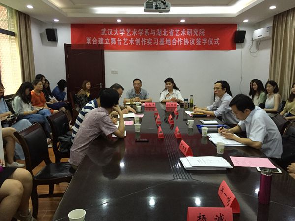 初夏时节,珞珈山麓,万树葱茏,生机无限。2016年5月19日下午,武汉大学艺术学系与湖北省艺术研究院共建舞台艺术创作实习基地合作协议签字仪式在我系隆重举行。我系主任刘丹丽和湖北省艺术研究院院长王永平代表双方在“联合建立舞台艺术创作实习基地的合作协议”上签字。武汉大学艺术学系党委书记丁康主持签字仪式。