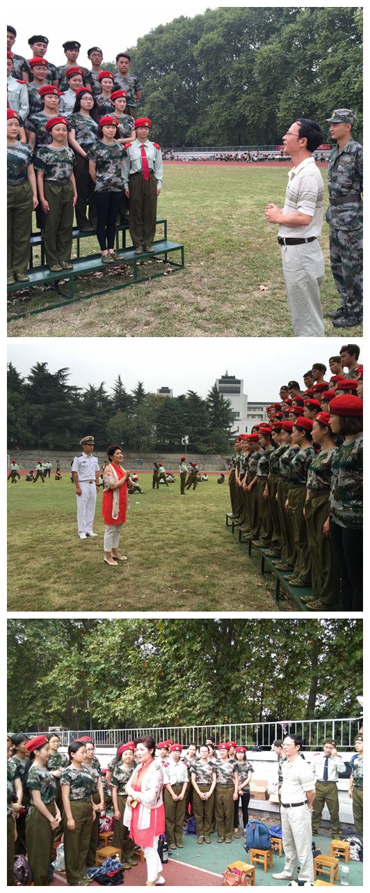 9月24日上午,我系党委书记丁康、主任刘丹丽、副书记李海波等到912操场,看望慰问我系2015级戏文、影表、声表专业的军训新生。