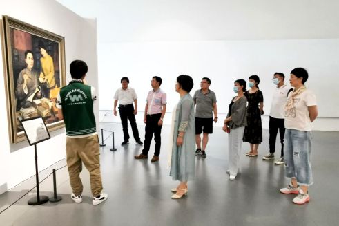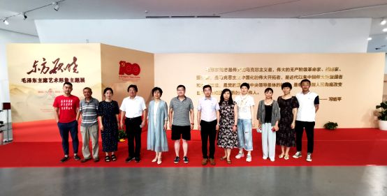 本网讯(通讯员:张珈利)为了庆祝中国共产党建党100周年,深入开展党史学习教育,回顾党的光辉历程,7月9日下午,在院党委书记王丽萍、副书记李海波的带领下,艺术学院行政党支部全体党员及教职工参观了在万林艺术博物馆举办的“东方欲晓——毛泽东主席艺术形象主题展”。
