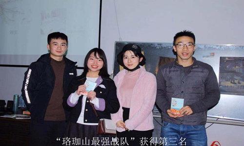 经过激烈角逐,各组均取得满意成绩。“春华秋实队”荣获第一名,“一览众山小队”获得第二名,“珞珈山最强战队”获得第三名,“红鲤鱼与绿鲤鱼与驴队”获得第四名。由艺术学院研究生会主席赵瑞君为获奖选手颁奖。