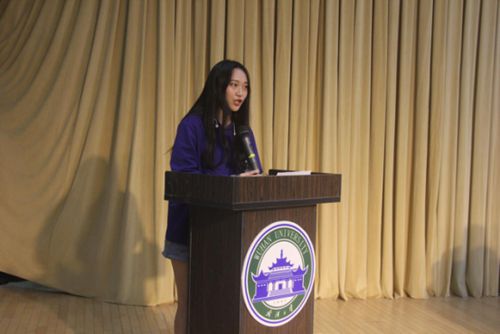 大会第七项,在校研究生代表、2017级硕士生郭雪瑶同学发言,她总结了读研一年来的收获以及对未来的展望,并激励学弟学妹们要珍惜大学时光、勇于尝试、在最美的大学成就最美人生。