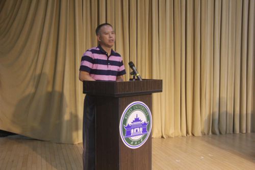 在庄严的奏唱国歌后,艺术学院副院长、院学位评定委员会主席黄献文教授致辞。黄老师在讲话中首先提到当代大学生应提高意志力和吃苦能力,并引用“问苍茫大地谁主沉浮”鼓励同学要拥有青春年华该有的魄力;随后,黄老师提出对艺术学院的同学的期望,希望大家增强文学修养,丰厚文学基础,并在最后祝福在座所有同学在武汉大学的学习生涯收获满满。