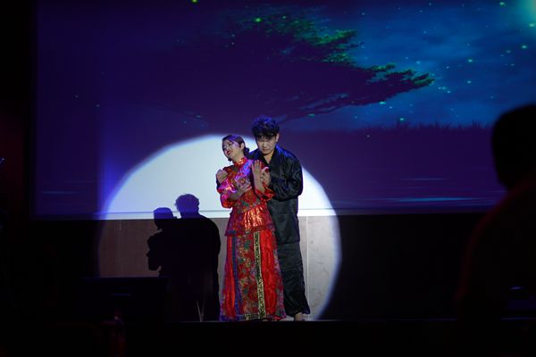 6、男女生二重唱《饮酒歌》,表演者:柳晓倩、张泽远,编导:王珊,指导老师:周钢,伴舞:14、15级表演专业学生