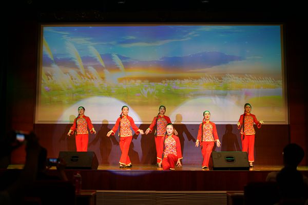 1、开场舞蹈《大地飞歌》,表演者:田琼、朱凌敏、许一诺、张圣星,指导老师:雷媛,编导:王珊,伴舞:14、15级表演专业学生