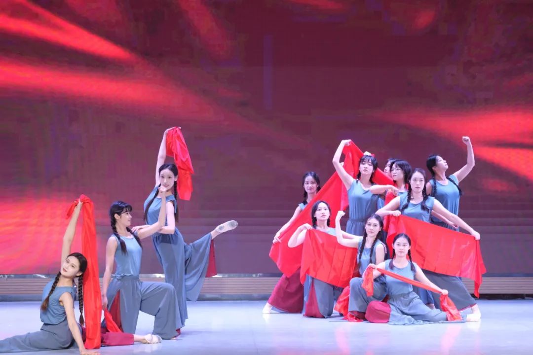 艺术学院带来的舞蹈《我心中的红》,以其独特的艺术魅力成为了此次大赛的璀璨亮点。该舞蹈以青春、奉献为主题,通过轻盈的舞步和深情的演绎,表达了对党、祖国和人民的热爱,以及对红色历史的缅怀和对新时代的赞美。红色,这一在中国文化中象征着热情、革命和胜利的色彩,在舞蹈中得到了完美的诠释。随着红色绸带的飘扬,观众仿佛穿越回那段激情燃烧的岁月,重温革命先烈的英勇事迹,感受他们为国家和民族解放所付出的巨大牺牲。同时,该舞蹈也展现了新时代青年的精神风貌,他们怀揣着对祖国的热爱和对未来的憧憬,以更加饱满的热情和更加坚定的信念,投身于祖国的现代化建设之中。
