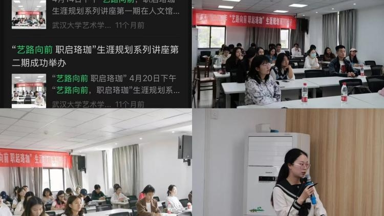 2024年4月,开展“艺路向前 职启珞珈”生涯规划活动2场,从考编考公、就业升学等方面为大家进行答疑解惑,传授经验。