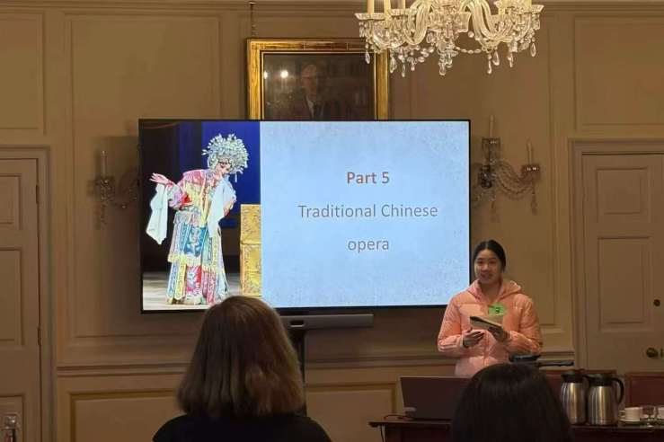 我在结业展示中向大家介绍了“中国唐代传统戏曲”。我们组演讲的主题就是“中国唐代美学”,我们希望在古老且人文底蕴浓厚的剑桥向大家展示中国古代文化的魅力,实现古今中外的文化碰撞,擦出绚烂的火花。我们小组的同学分别来自不同的学院,主修着不同的专业。所以我们选定了“中国唐代美学”这个主题,就每个人擅长的不同方向在广度上向大家展现中国唐代美学的魅力。我主修的是表演专业,所以我选择了“中国唐代传统戏曲”,分别从唐代戏曲分类以及音乐、舞蹈和西域文化对其影响四个方面切入。着重介绍了“梨园”和“霓裳羽衣曲”这两个极具代表性的中国唐代传统戏曲的元素。最后的结业展示顺利完成了,我们的结业展示得到了很多正向反馈,没想到的是教授会对我讲的唐代戏曲方面感兴趣从而提问我。她对我的评价也让我备受鼓励,她说一看到我站上去就知道由我来讲与表演有关的内容很有说服力,她说我站在上面时清楚地知道自己在干什么、我知道我是谁。说来感慨,我一直觉得我不知道自己是谁,多愁善感地觉得自己不了解自己。但是她对我们说:“我不需要你完美,我只需要你做自己”,让我有了更多做自己的勇气和信心。她在对我的评价最后绘声绘色地讲着:有一天在大荧幕上看到我,她会对身边的人说:“我记得这个女孩,她多年前来过剑桥”。虽然或许只是玩笑话,但是却让我对于未来有了更多的憧憬。