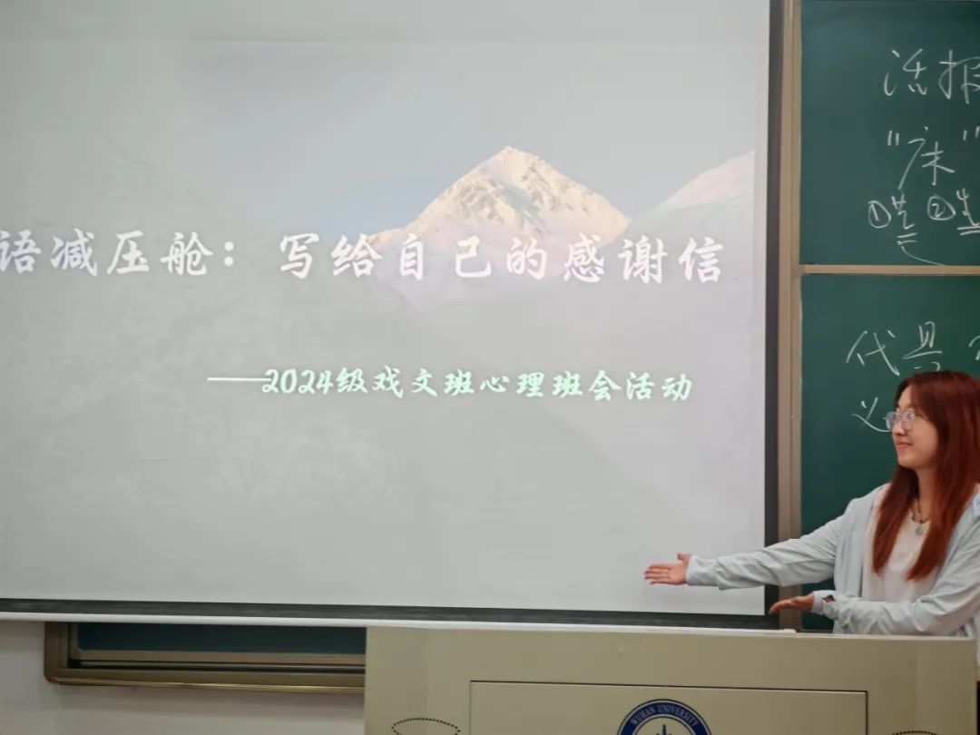 2025年5月8日,在初夏温柔的阳光里,乐动登陆入口2024级戏剧影视文学班的同学们化身“心灵治愈师”,于枫园教学楼教室开启了一场特别的“心语减压舱”:“写给自己的感谢信”主题心理班会。这是一场文字与心灵的双向奔赴,同学们通过“倾诉—感恩—展望”的沉浸式体验,用笔墨为情绪松绑,以信笺同自我对话。在书写中梳理成长的烦恼,在分享中传递温暖的力量,让每一封写给自己的感谢信,都成为这个五月最动人的心灵独白。