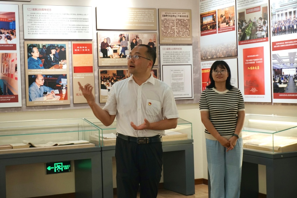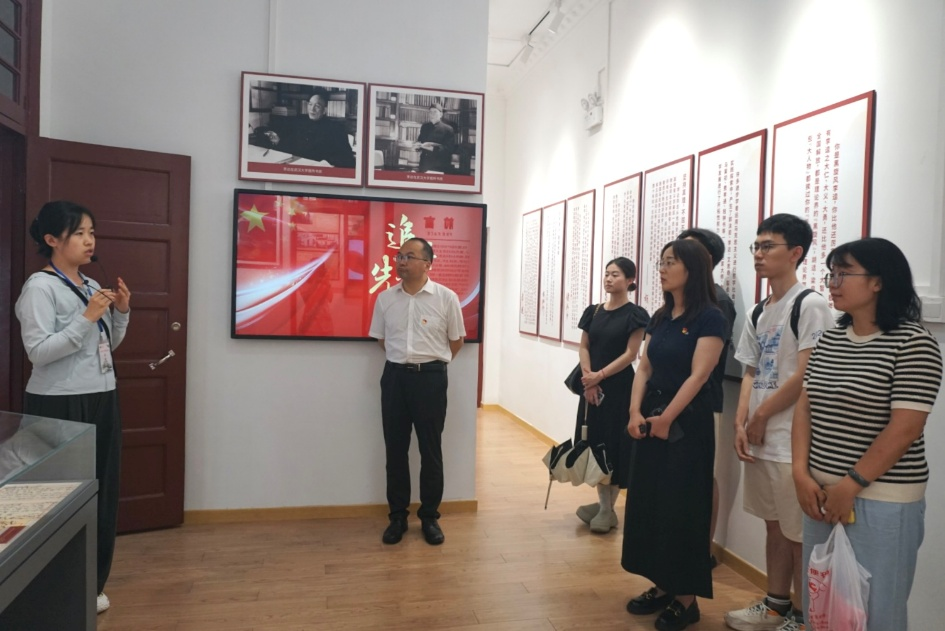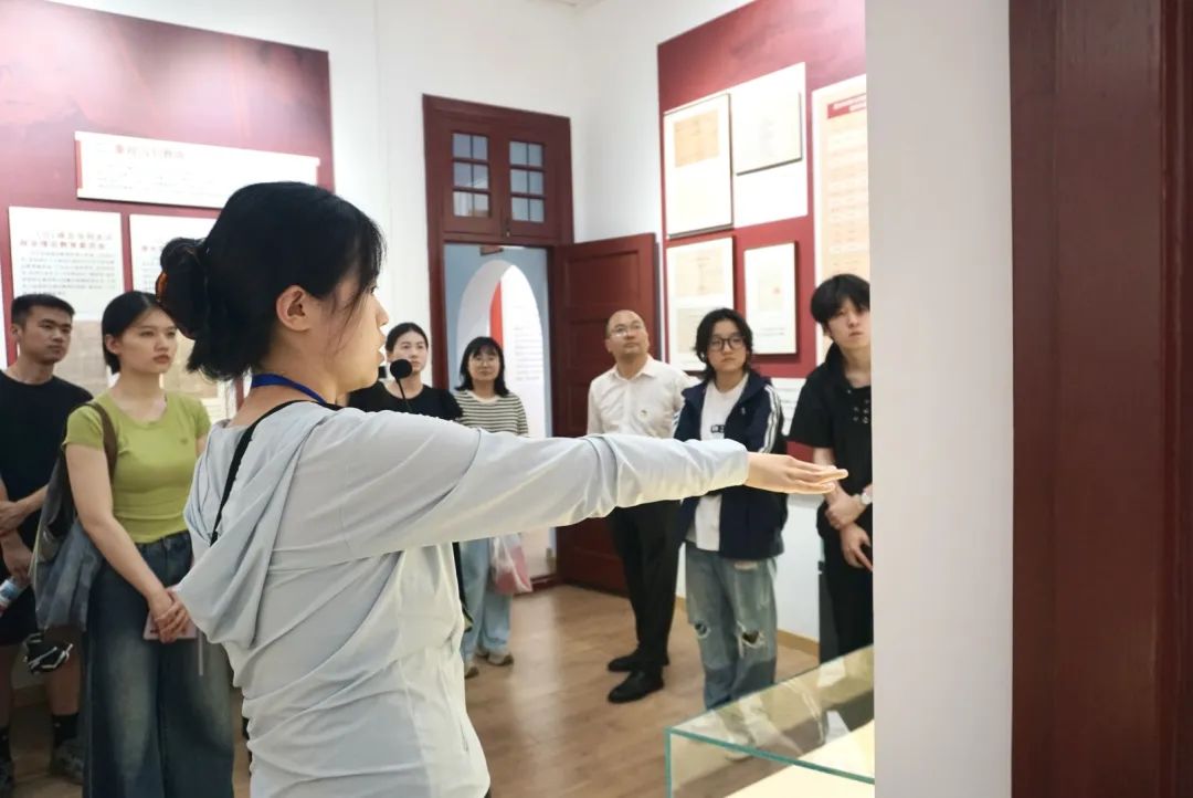 青砖灰瓦的李达故居内,师生一行跟随专业讲解员的生动讲述,穿越时空长廊追溯革命先辈的奋斗轨迹。作为中国共产党主要创始人之一,李达同志以 “笔杆子”为武器,在新民主主义革命时期翻译出版《唯物史观解说》等 30 余部马克思主义著作,为党的思想理论建设奠定重要基础。作为武汉大学任职时间最长的校长(1952-1966),他主持制定 “教学与科研并重”的办学方针,亲手规划樱园建筑群,为珞珈学府的发展擘画宏伟蓝图。